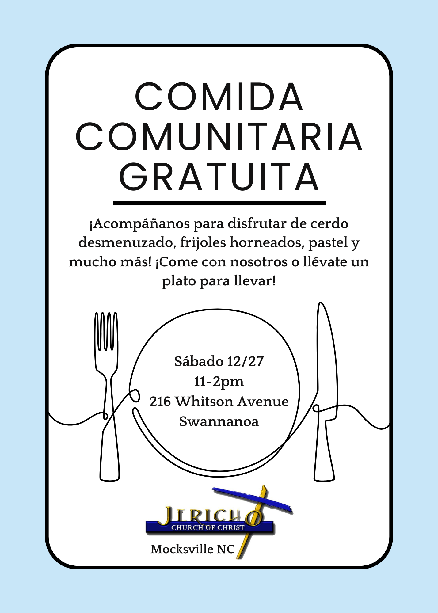 Join us for pulled pork, baked beans, cake and more! Eat here or take a plate to go.